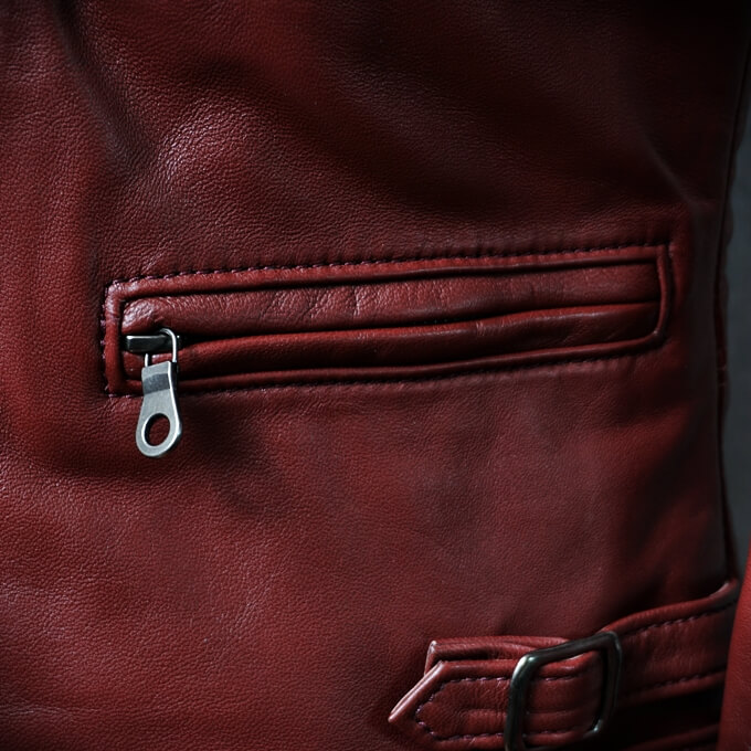 ライダースジャケット特有の袖の形ですが、街着でも全く違和感はありません。