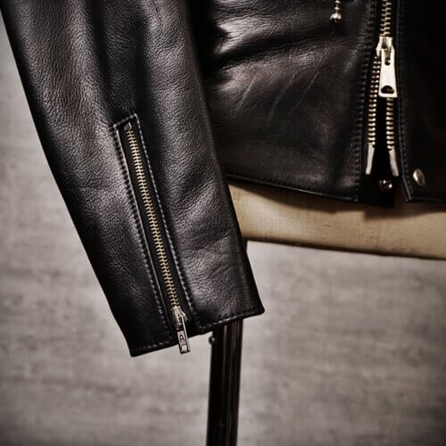 ライダースジャケット特有の袖の形ですが、街着でも全く違和感はありません。