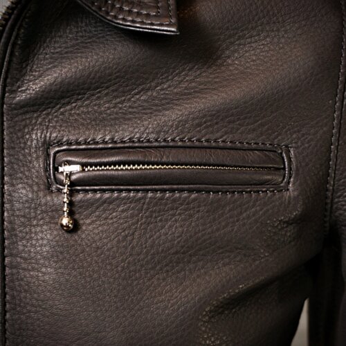 ムシ(ファスナーのギザギザ)をレザーで覆う「ムシ見せ縁付き」仕様。