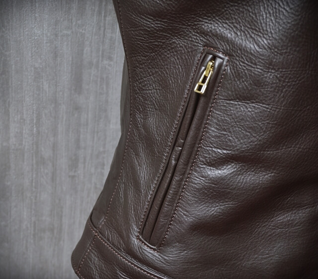 街着・バイク用途でオーダーメイドのご注文いただいた革ジャン・レザージャケット、メンズの襟付きライダースのご紹介です。