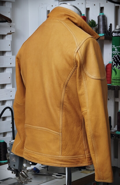 主に街着用途でオーダーメイドのご注文いただいた革ジャン・レザージャケット、メンズの立ち襟ライダースのご紹介です。