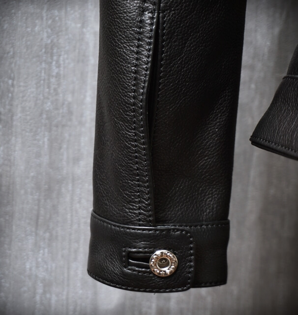 フロントボタンの左右には、ビンテージのGジャンで見られるプリーツを再現しております。