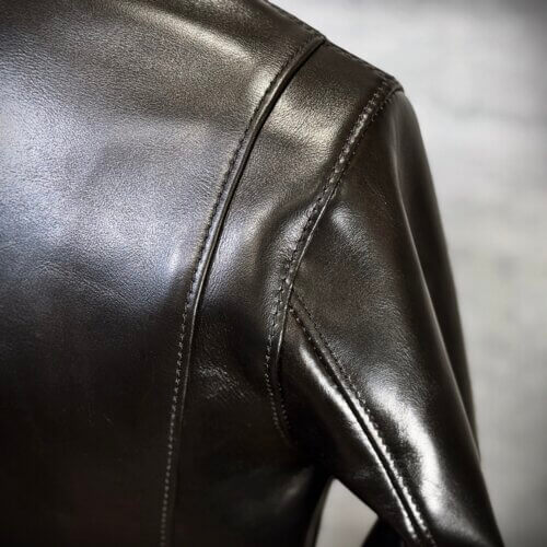 当店オリジナル茶芯漆黒牛革で製作した、UKダブルライダースのご紹介です。