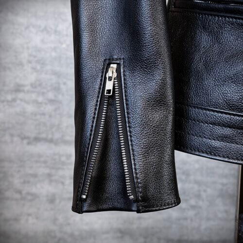 ライダースジャケット特有の袖の形ですが、街着でも全く違和感はありません。